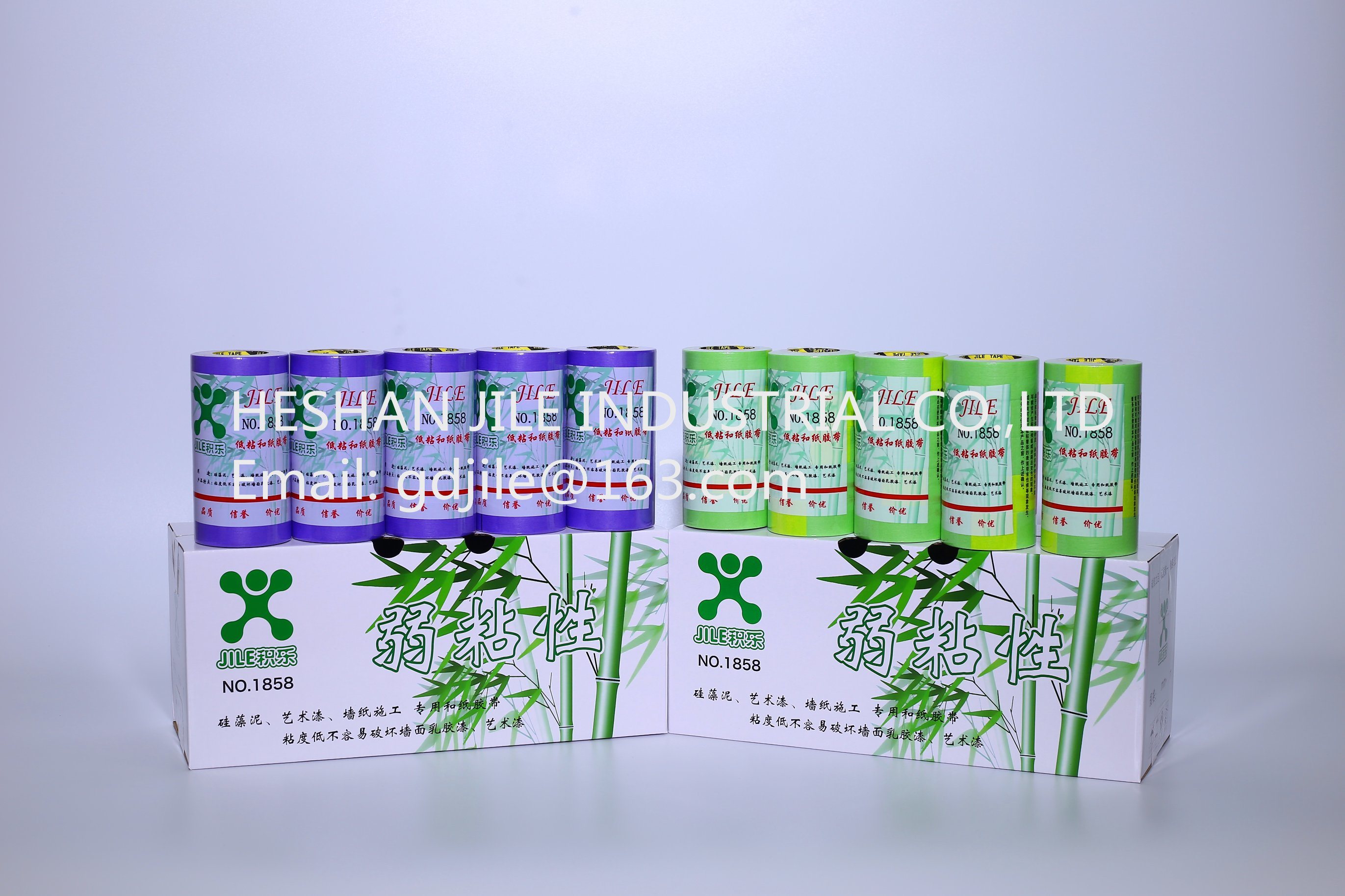 الخصائص: هذا المنتج له نوعان: الغراء الزيتي، الذي يمكن أن يقاوم طلاء النيتروسليلوز؛والغراء المائي الذي لا يمكنه مقاومة طلاء النيتروسليلوز.يستخدم هذا المنتج بشكل رئيسي أثناء عملية الطلاء والرش للديكور الداخلي.تتميز أشرطة واشي بالعناية بالأشياء.